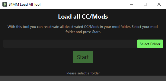 If for some reason you can't use the Mod Manager anymore, but still have CC disabled, there is now a small tool to enable it again. It is located in the installation directory of the Mod Manager and is called "S4SS-Load-Tool.exe". Just select your mod folder and click start.